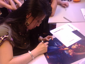 They started by asnwering some questions about their lives as comic creators and girls, their opinions and such and later the audience get the chance of asking. The whole thing was in English in favor of the two foreign artists. They were all fantastic and pretty fun, though we were all quite astonished by Sonia Leong. She had such energy in her and wherever she talked she managed to pass her excitement with us.